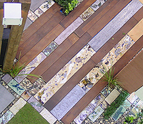 | 『磁芸釉遊』は、エクステリア空間をさりげなく演出する製品です。やきもの以外の様々な素材とのコラボレーションが楽しめます。 | ||